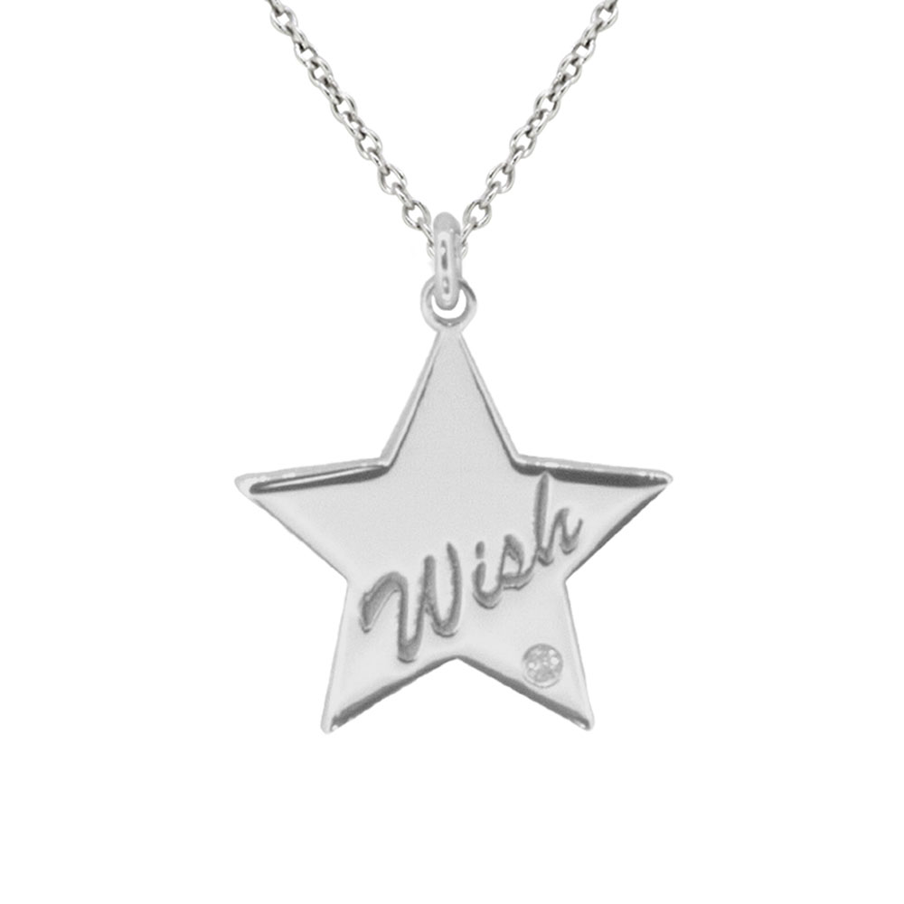 Sterling Silver CZ Wish Star Pendant , Trace Chain Included